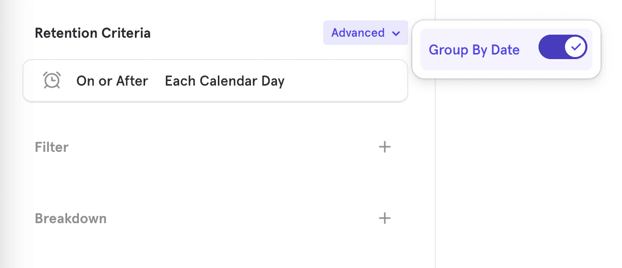 We think “On or After” retention is a better fit for most businesses and it is the default calculation for the Retention report. This is because it’s more common that a product doesn’t require users to come back in each time unit to achieve the product’s value proposition, and more often than not when doing retention analysis we don’t only value the user coming back in a specific time unit as long as they eventually do. However, if this is important to you and your business, please utilize “On” Retention.